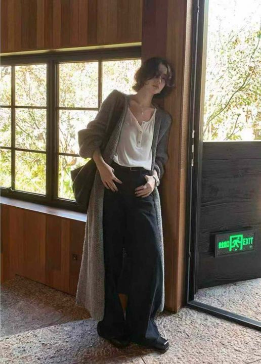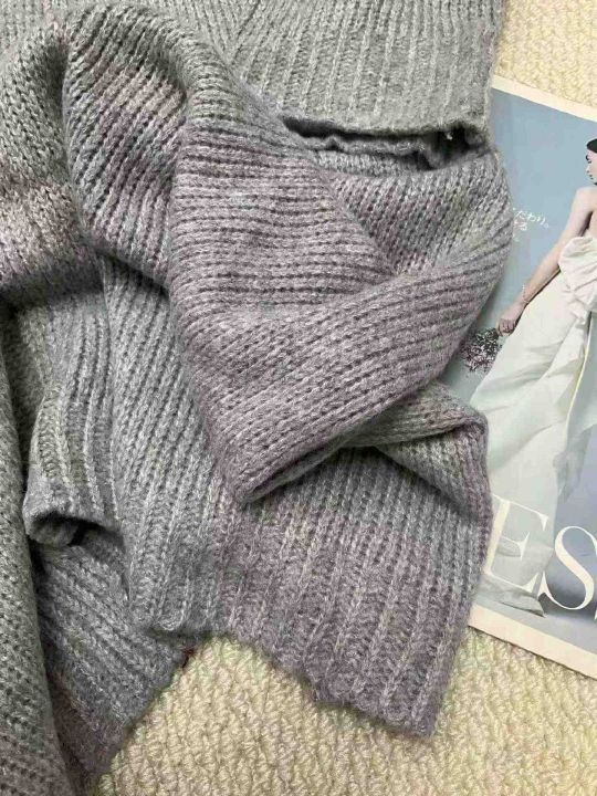 春秋新款加厚慵懒风灰色中长款宽松百搭毛衣开衫大衣,...