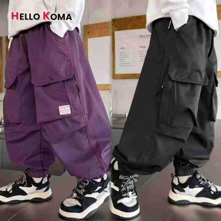 夏季热卖冰丝中大童多口袋潮牌束脚工装裤,独立包装,整款两色(黑色为主),码数120-170,数量352条,(K77)