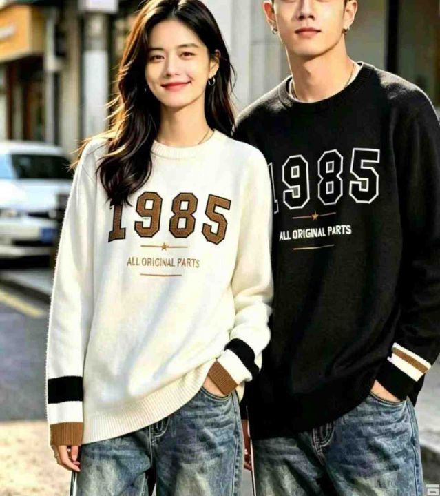 春秋新款字母提花宽松百搭慵懒风圆领套头毛衣,独立包装,单款多色,均码宽...