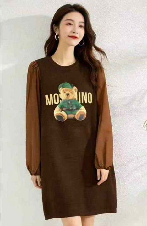 春季新款网红复古卡通印花拼接袖中长款针织毛衣裙,独立包装,均码面料软糯...