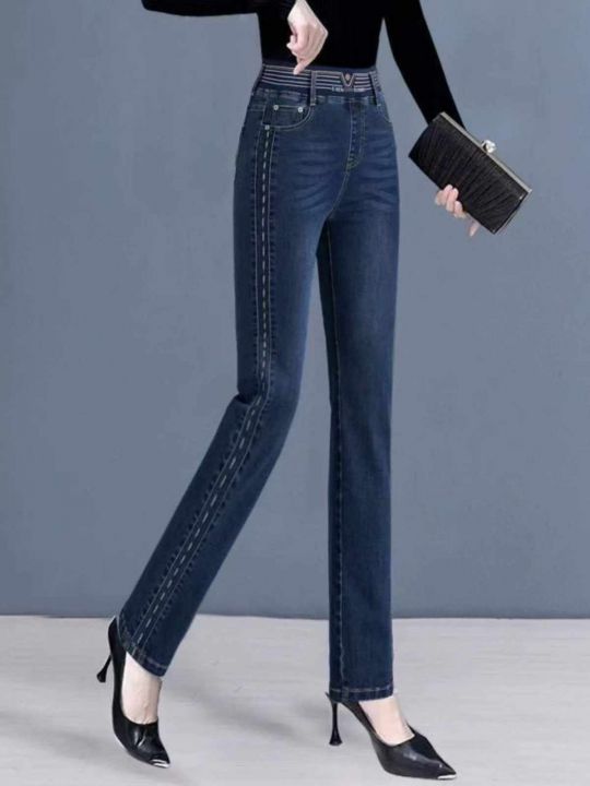 春季新款高腰高弹力松紧腰中熟宽松百搭牛仔裤,独立包...
