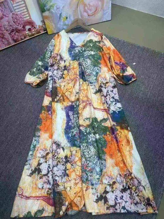 法式高级感印花连衣裙2026夏季新款七分袖裙显瘦通勤气质,图片款,图片色,侧边设计口袋,裙长115厘米,1.2码,独立包装,货品干净,300件左右,8.8清,分货加1