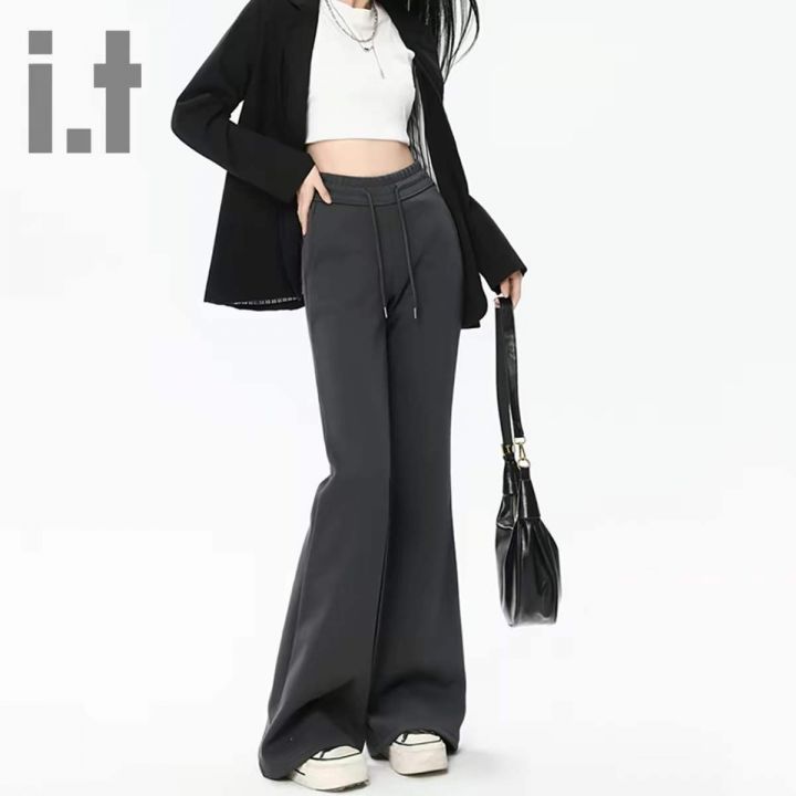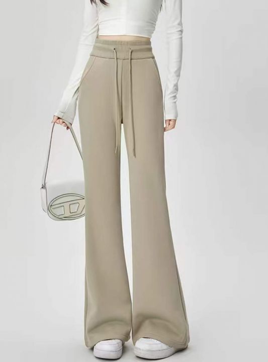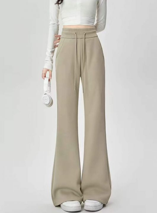 春季新款网红复古韩版高腰垂感显瘦直筒微喇叭松紧腰休...