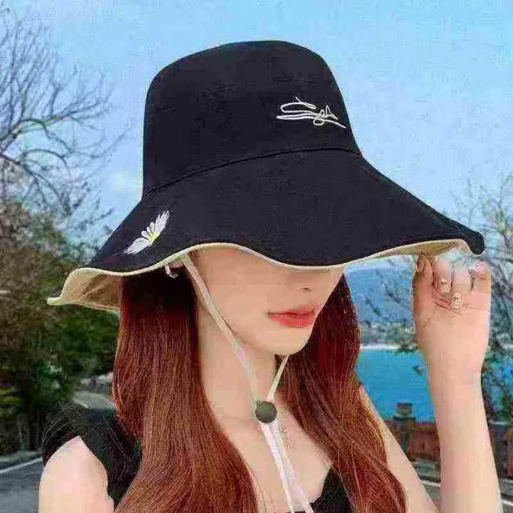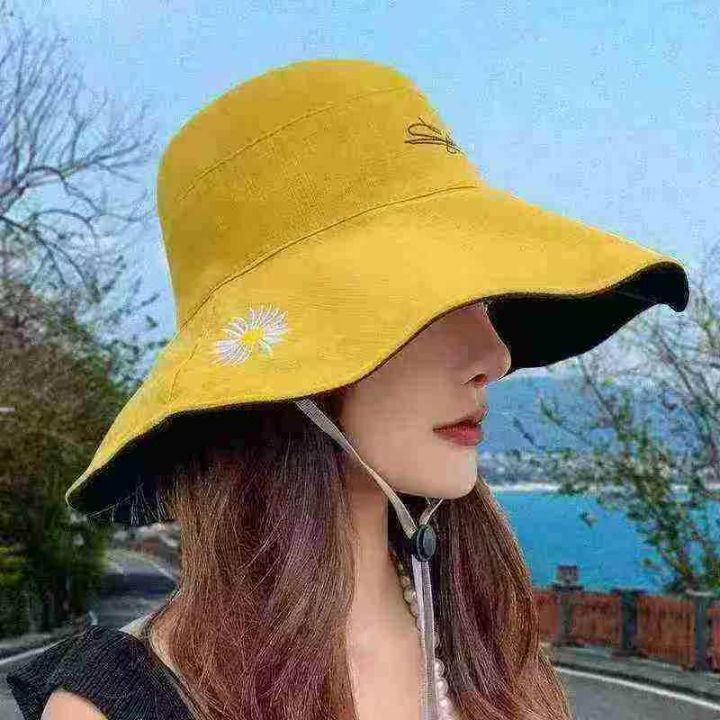 1000件双面小雏菊渔夫帽女夏天日系遮脸韩版潮百搭遮阳大沿太阳防晒帽子,棉麻的,质量超好!福利秒杀价1.99 不分货