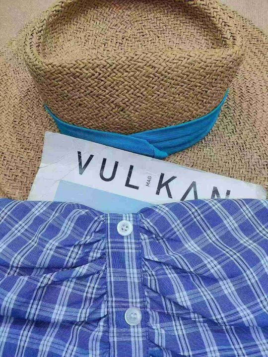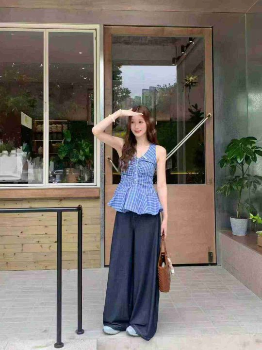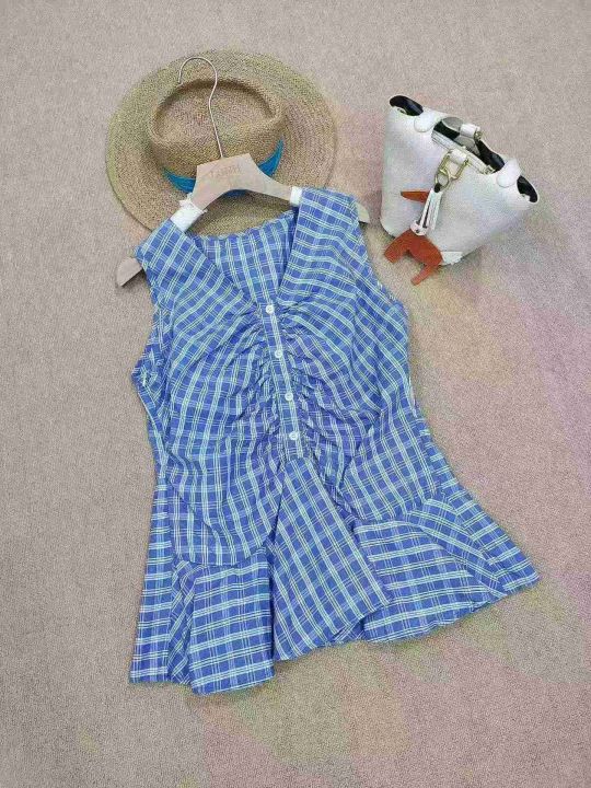 [月亮]:25新款高品韩系复古蓝格辣妹上衣裙