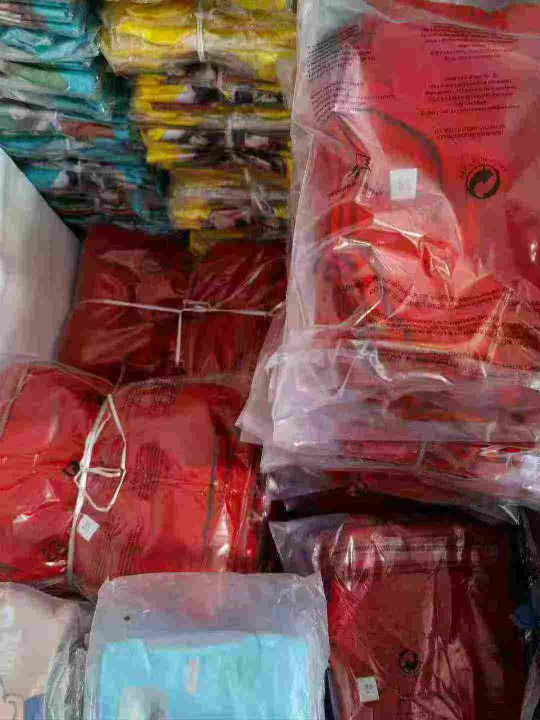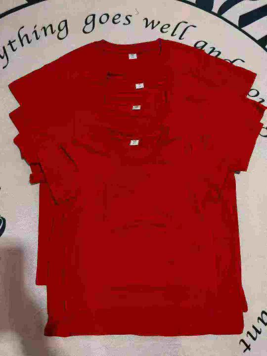 童装红色纯棉光板短袖T恤,数量564件,尺码110--160,后领包边到肩,十件一包装,有码数清单,大货干净整洁