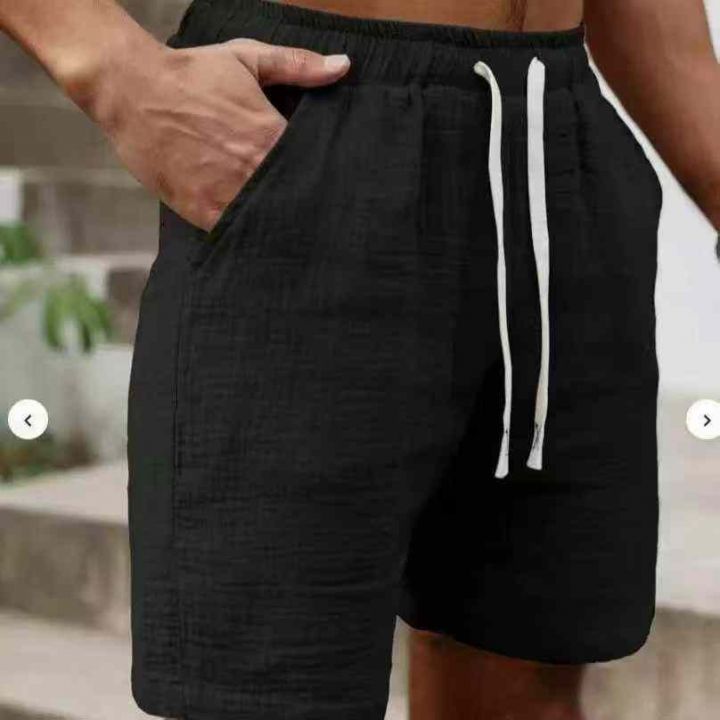 男士棉麻口袋款宽松抽绳 款中裤,整款2色,独立包装,...