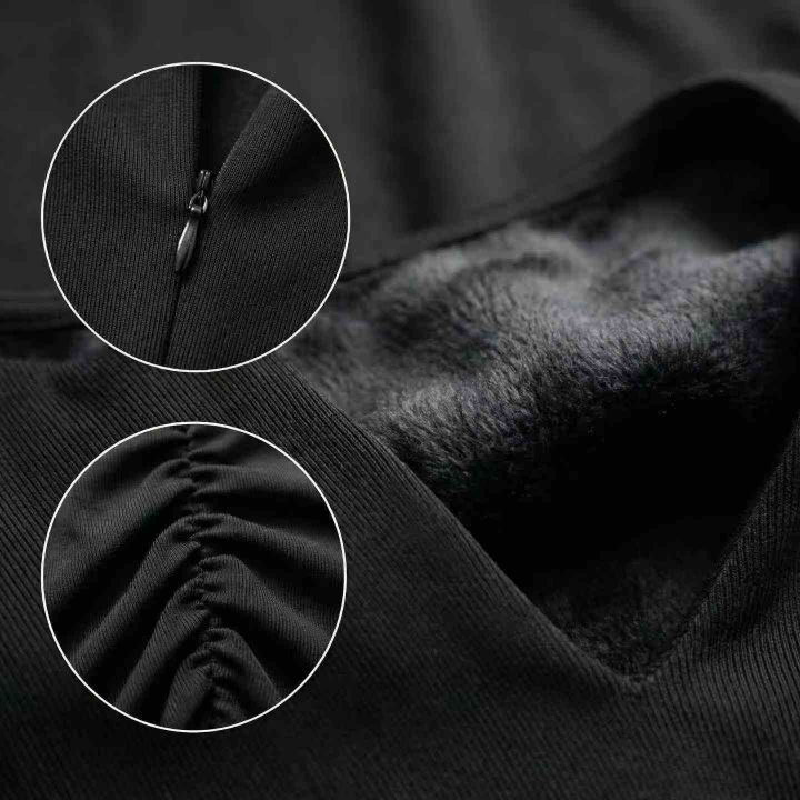 高品质女装整款加绒连衣裙 黑色V领侧打揽修身包臀裙 加绒显瘦长袖紧身辣妹包臀气质连衣裙