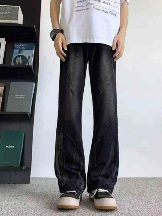 ☕️旧复古拼接直筒宽松百搭长裤潮流美式牛仔裤子小众...