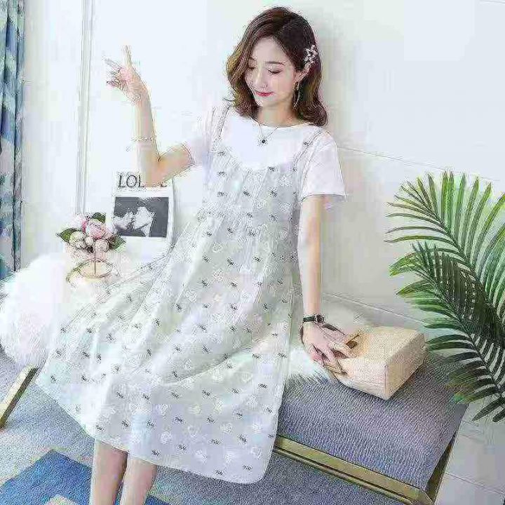 70件新款孕妇装网红夏装假两件宽松甜美连衣裙,码数L-3XL,独立包装货品干净,5.8清