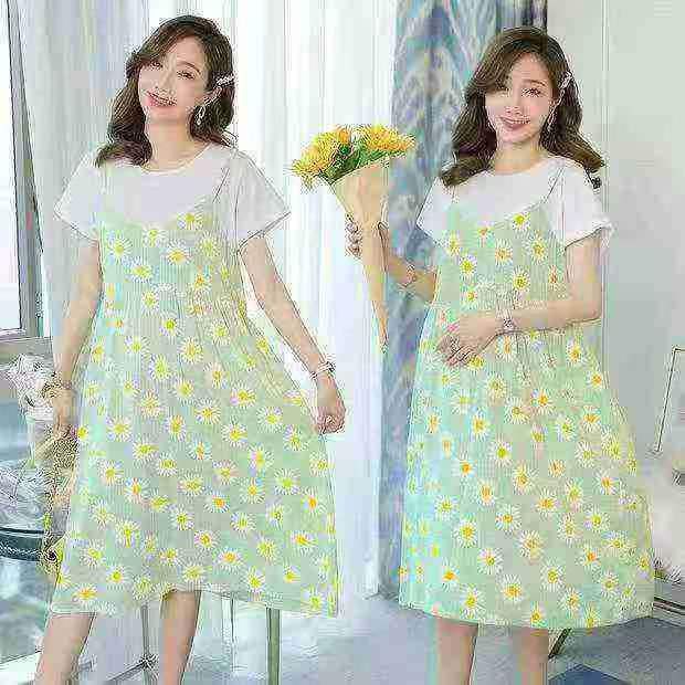 5.8清70件新款孕妇装网红夏装假两件宽松甜美连衣裙,...