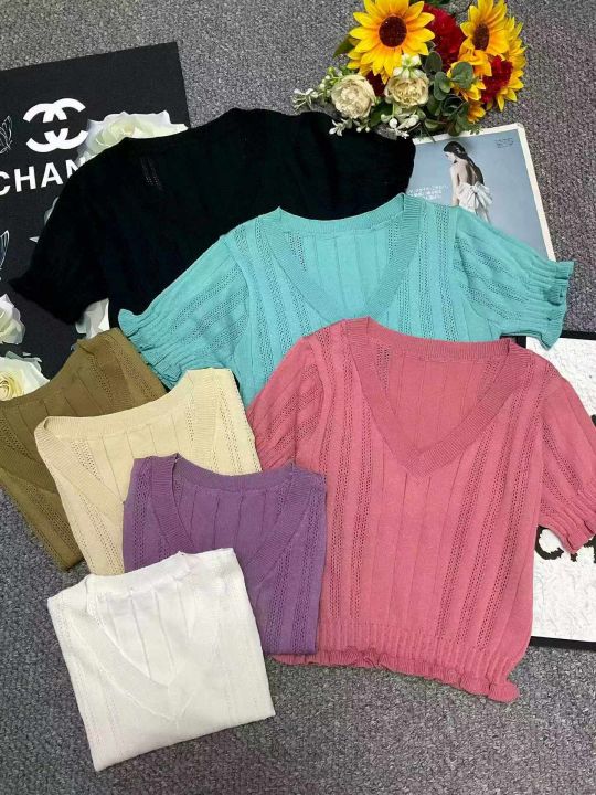 夏季新款镂韩版V领木耳边冰丝设计感高腰显瘦短款针织T桖,独立包装,均码面料柔软舒适弹力大,3560件,全清5.9元超低价秒杀!分货加一!