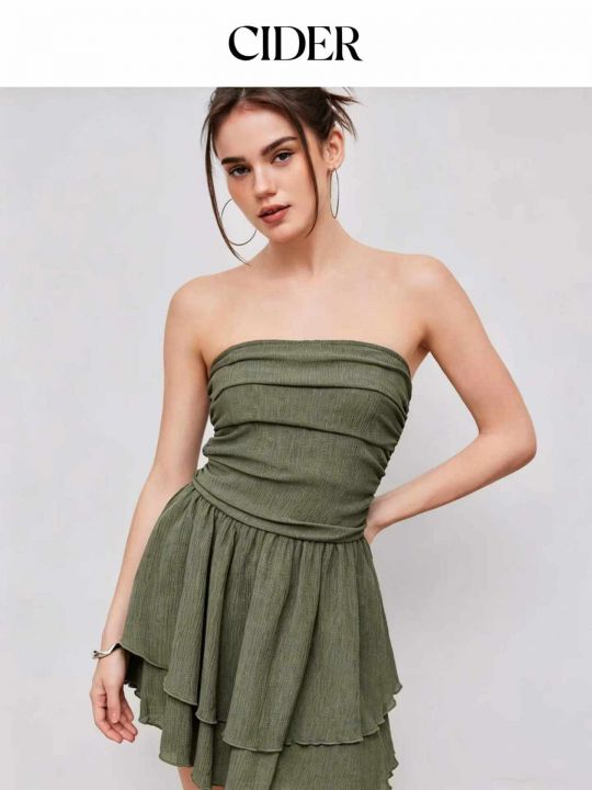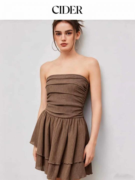 明星同款美式褶皱夏荷叶边设计抹胸连衣裙,独立包装,...