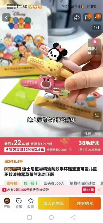 迪士尼系列驱蚊手环带标6000pcs打骨折