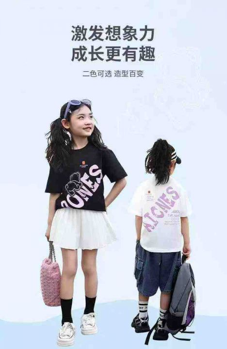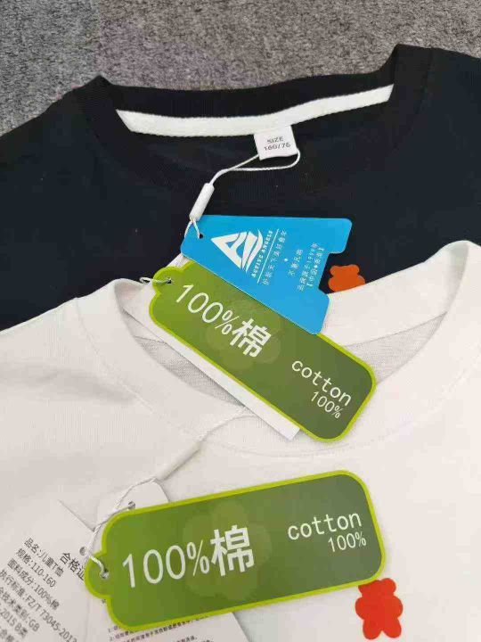 夏季新款中大童双面印花纯棉T 数量2000件左右 尺码110--160 整款两个色 后领包边 独立包装带吊牌 货品干净整洁