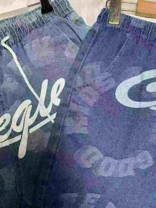美式潮牌印花牛仔短裤男士夏季高街宽松直筒五分裤90件,独立包装带吊牌,尺码 M~3XL,全清福利价8.8元