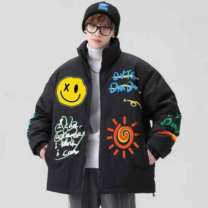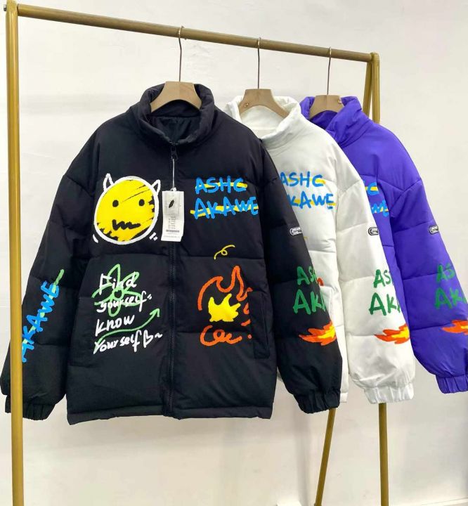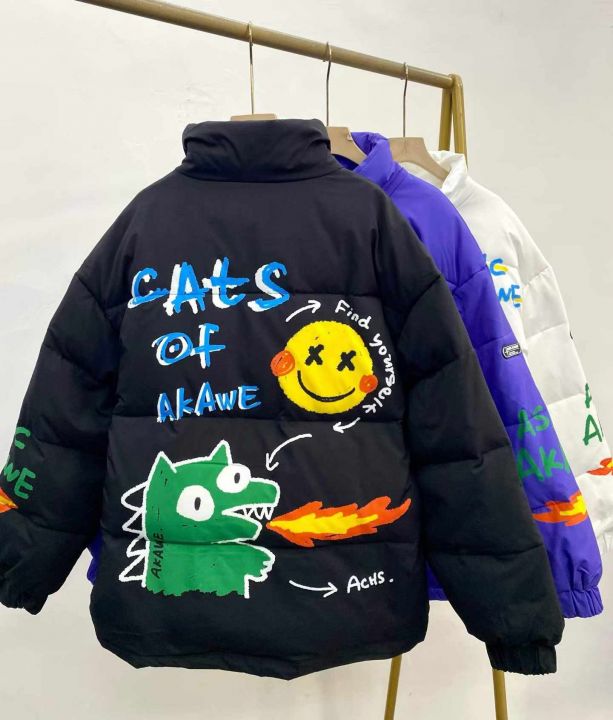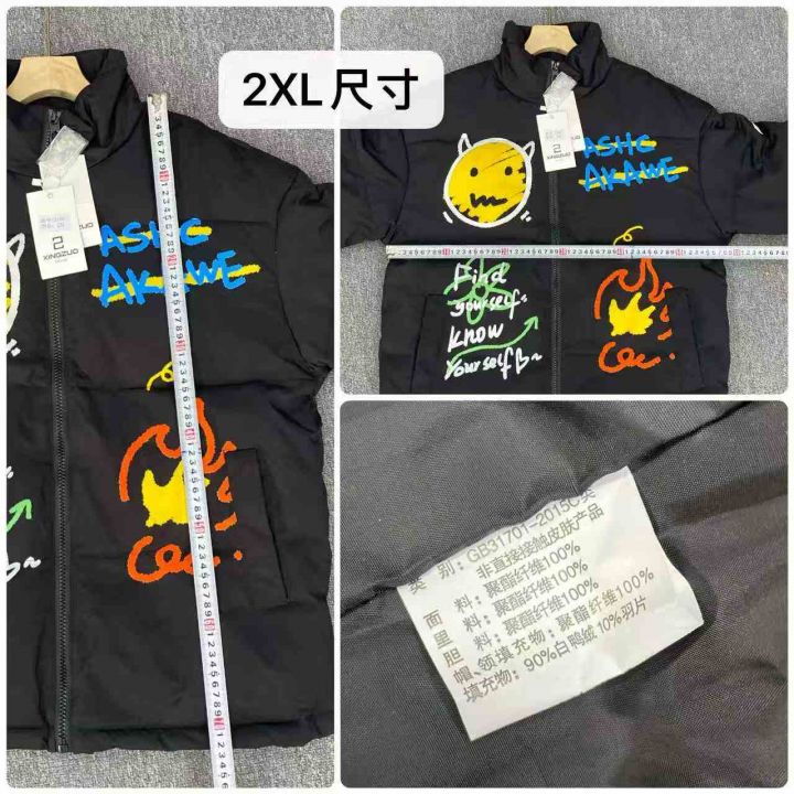 宽松情侣款羽绒棉服38件29,前后图案印花,防风袖口设...