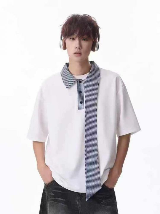 全清6.8 「航海系」迈特优领口拼接短袖男女同款夏季设计感宽松休闲情侣...