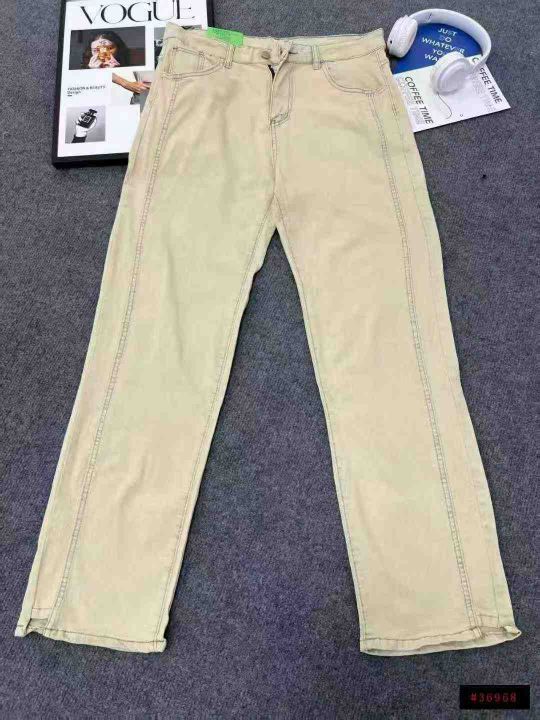 男女同款个性染色水洗牛仔裤176条,全清11.8元,正品独立包装,码数S-XXL,杏色色窄版微喇牛仔裤男女春季显瘦显高直筒长裤美式高街修身微喇裤@_@