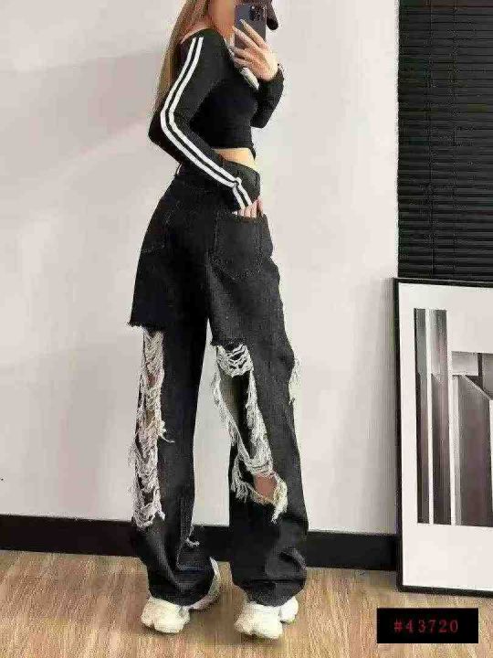 美式复古破洞牛仔裤女夏季设计感小众高腰直筒拖地阔腿裤201条全清11.8元,码数S到XL,正品独立包装,个性潮流款牛仔阔腿裤[庆祝][庆祝][庆祝]@_@
