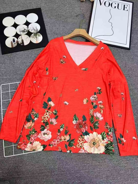820件\'秋冬新款亚马逊wish欧美跨境女装V领套头印花长袖上衣T恤女,独立包装,码数5XL,分货➕1,货号001#30