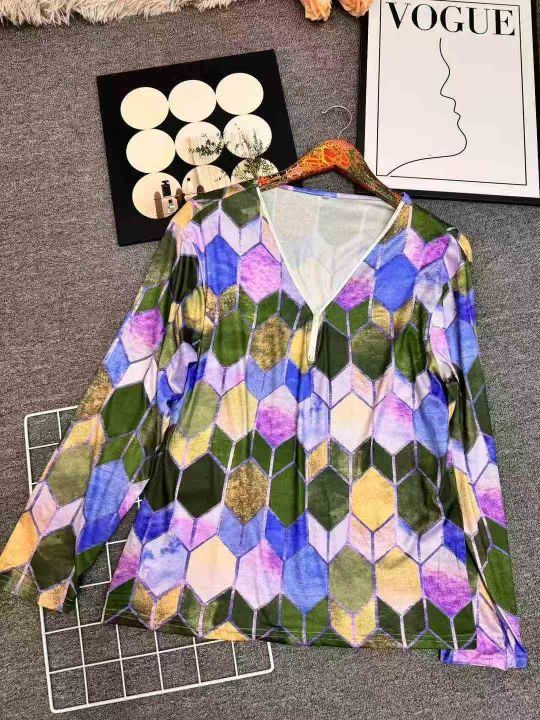 1200件\'欧美女装亚马逊爆款街头潮人几何魔方印花V领拉链衫长袖T恤女\'独立包装\'码数S-5XL,分货➕1,货号001#30
