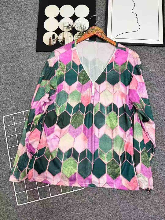 夏季新款时尚洋气中年妈妈气质印花雪纺衫,独立包装,码数L--3XL码,357件...