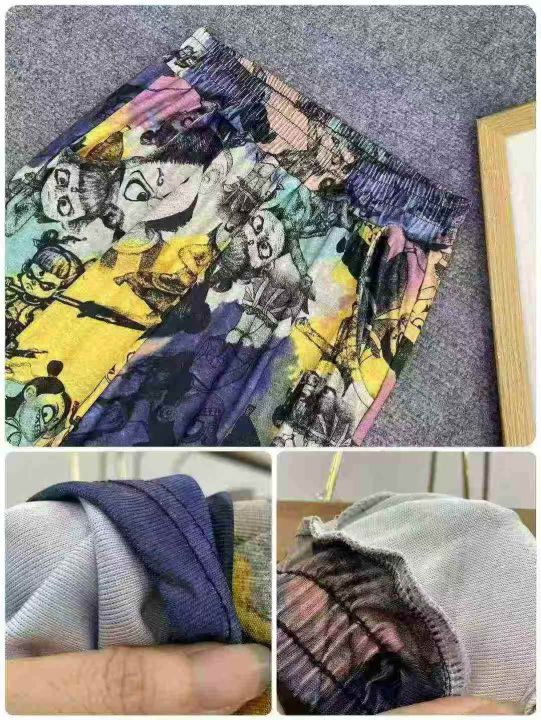 扎染哪吒图印阔腿裤975件6.5,面料舒适高弹力,松紧腰...