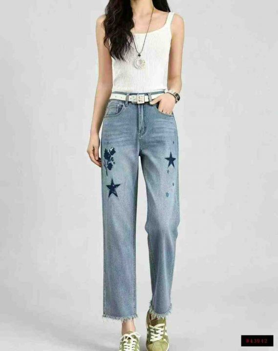 高弹力高腰星星工艺牛仔裤百搭显瘦直筒烟管裤9条全清9.8元,码数25-29,正品独立包装[庆祝][庆祝][庆祝]@_@