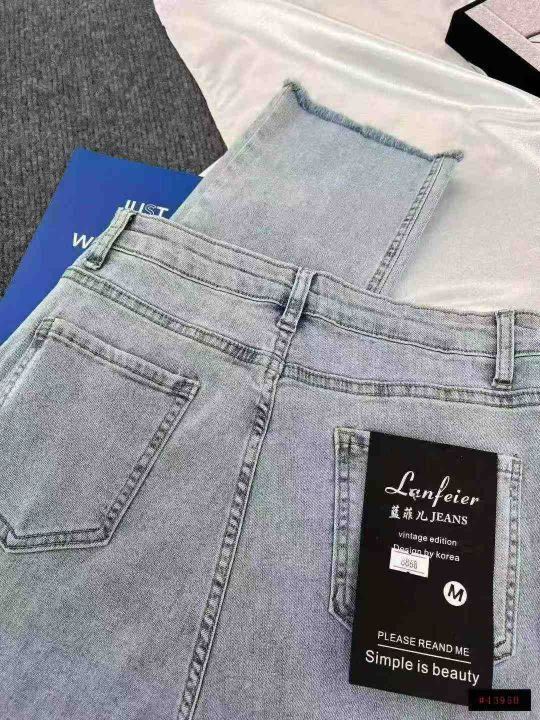 高弹力牛仔裤女夏季薄款毛边高腰弹力显瘦窄版直筒烟管裤280条全清12.8元,码数S到XL,独立包装,中山弹力牛仔好面料[庆祝][庆祝]@_@