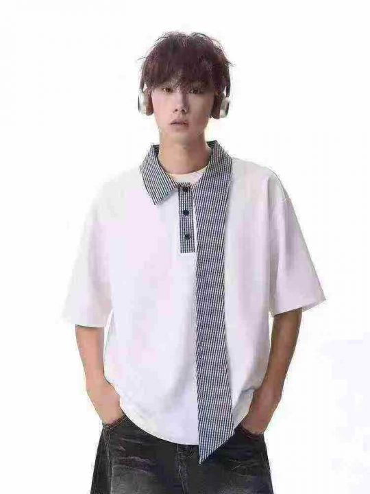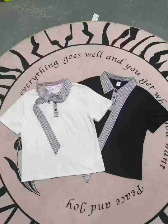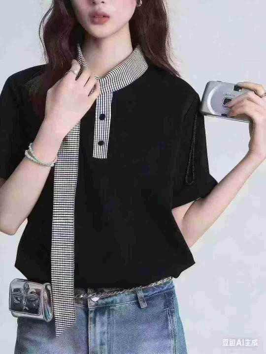 「航海系」迈特优领口拼接短袖男女同款夏季设计感宽松休闲情侣T恤 数量80件左右 尺码S--L 两个颜色 独立包装 货品干净整洁
