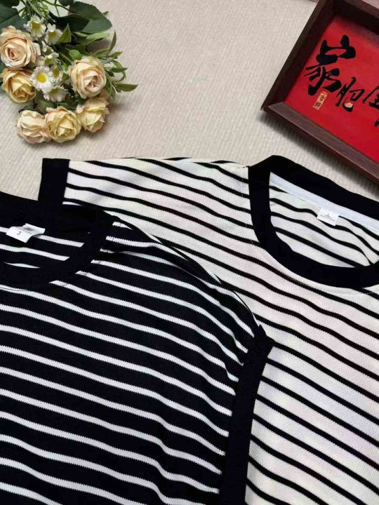 450件靓女条纹针织短袖T恤,夏季薄款,冰丝面料,穿着凉快舒服,圆领设计,...