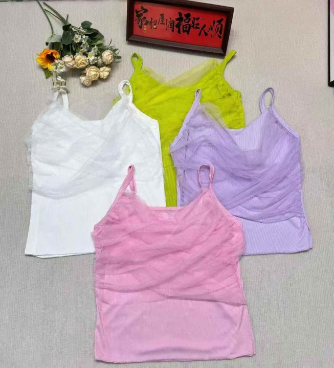 纯欲辣妹风网纱交叉拼接百搭吊带背心·单款4个色S-3XL独立包装360件全清5.9分货加一