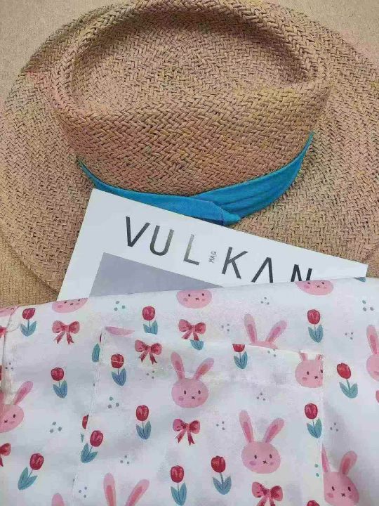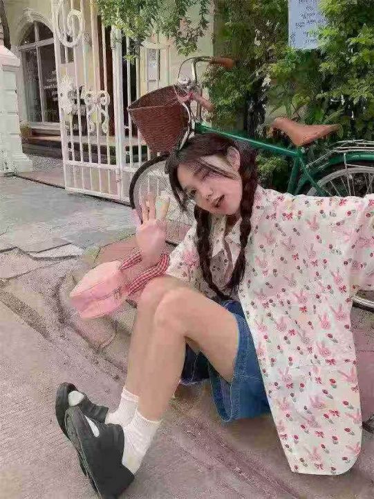 [月亮]:港味甜美兔子满印宽松短袖衬衫