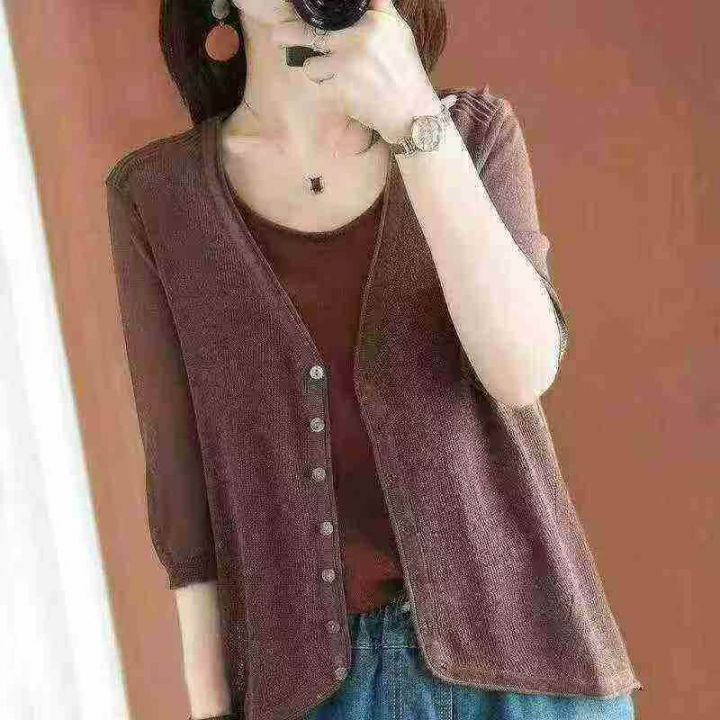 春夏季新款轻熟女装净版简约宽松针织开衫,独立包装,...