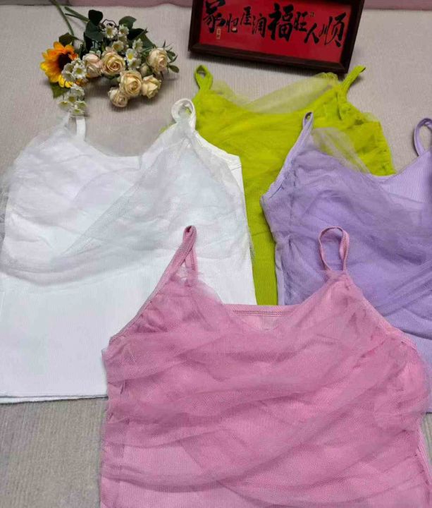 纯欲辣妹风网纱交叉拼接百搭吊带背心·单款4个色S-3XL独立包装360件全清5.9分货加一