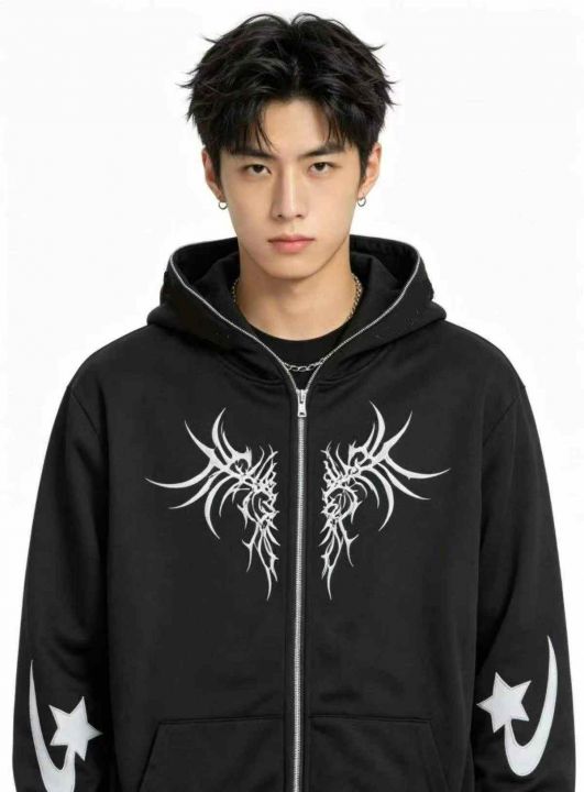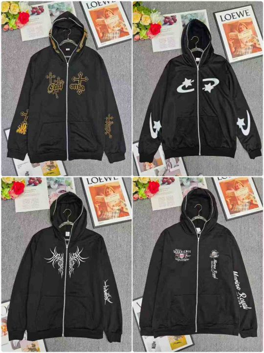 电商仓回收430件美式潮牌拉链男连帽卫衣开衫外套,码数S-2XL。后领有包边,图案多样。独立包装,分货➕1
