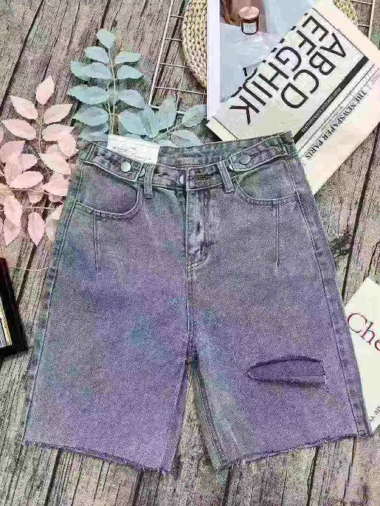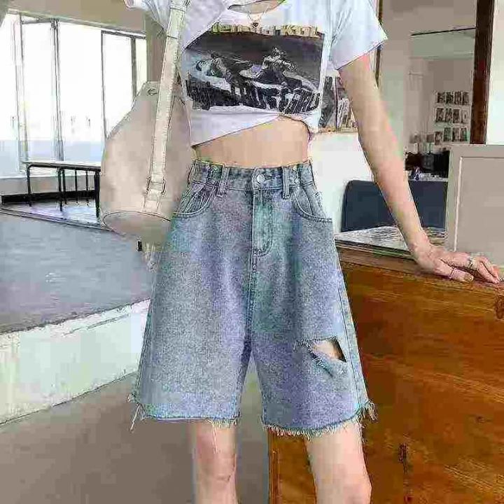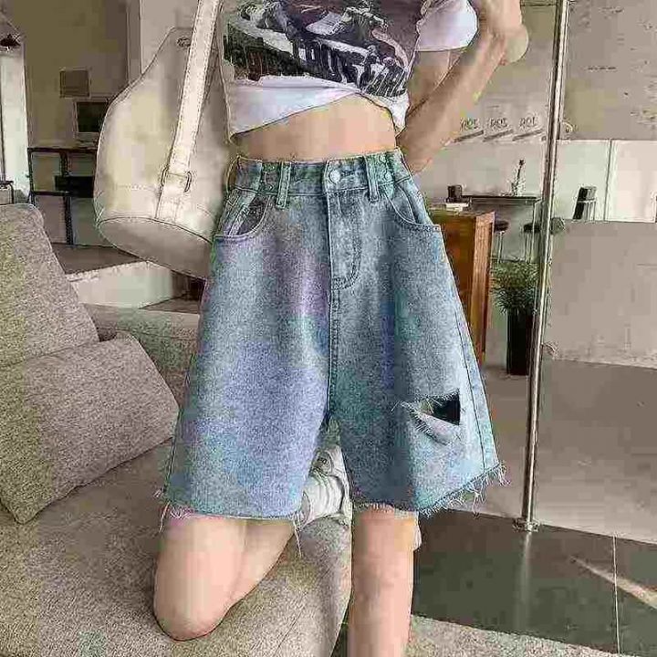 牛仔五分裤☕️300条全清6.8元,码数Xs S( 80-110斤),独立包装,小众设计感破洞牛仔短裤女夏款阔腿宽松直筒五分牛仔中裤