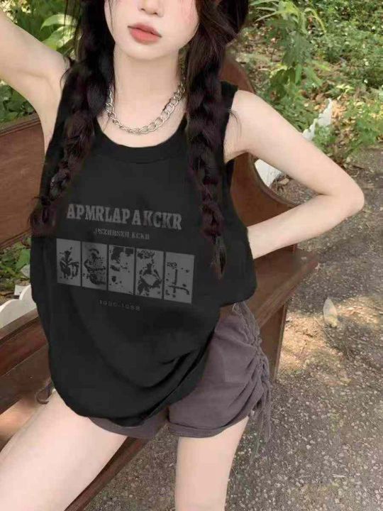 2.8清电商仓回收4000件夏季慵懒靓妹印花背心无袖上衣...