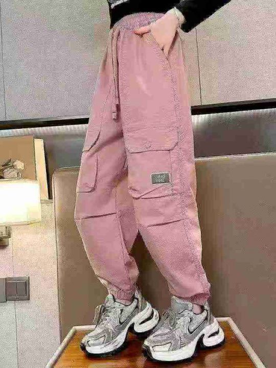 中大童女孩时髦潮酷运动裤休闲工装裤,独立包装,整款三色,码数120-170,数量1827条,分货加1,(K195)