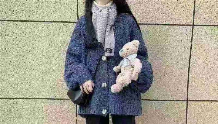 秋冬新款网红复古时尚百搭宽松麻花毛衣开衫,独立包装...