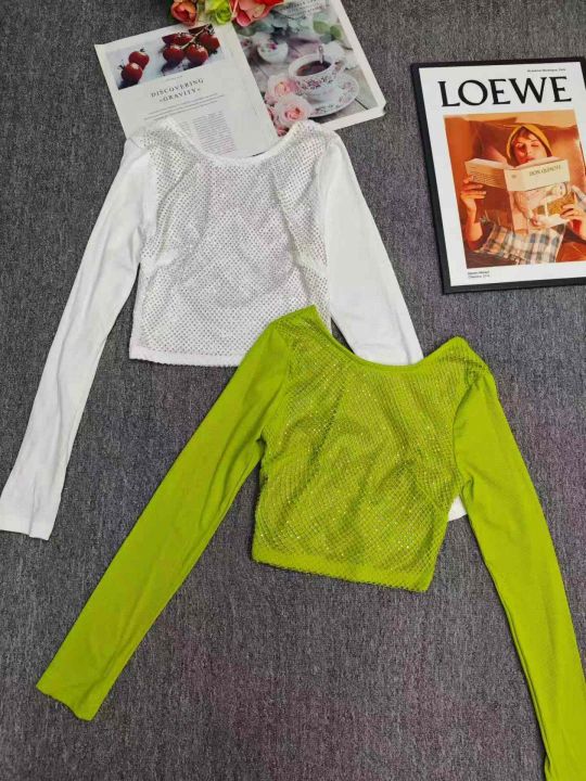 6.8清电商仓回收116件外贸镂空时尚烫钻重工辣妹长袖,...