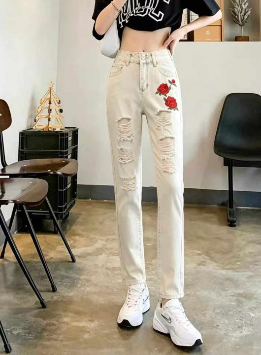 ☕️破洞牛仔裤女小个子夏季高腰显瘦牛仔老爹裤,中大童也能驾驭,128条全...