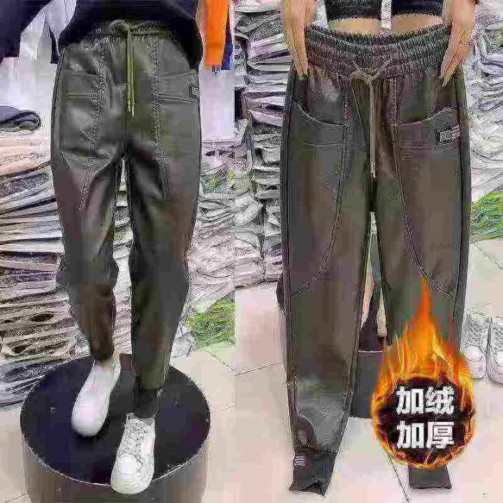 106条皮裤女士加绒加厚松紧腰长裤,单款单色,尺码1-7,即s-4xl,全清7.8分+1