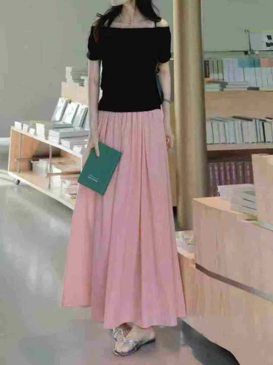 天猫在售款368件左右高品质夏季韩系小众简约高腰温柔风半身裙,码数L-XL,单款单色,独立包装带吊牌