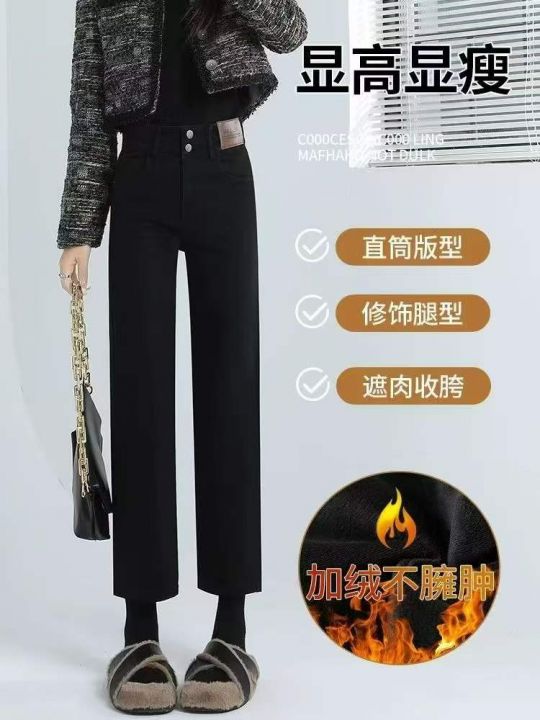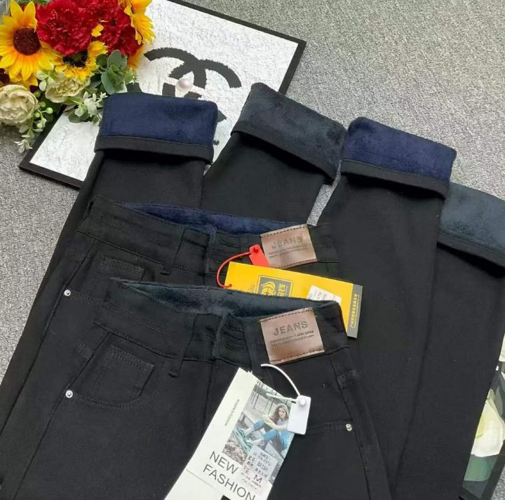 秋冬新款加绒加厚高弹力洗水棉牛仔烟管裤,独立包装带...