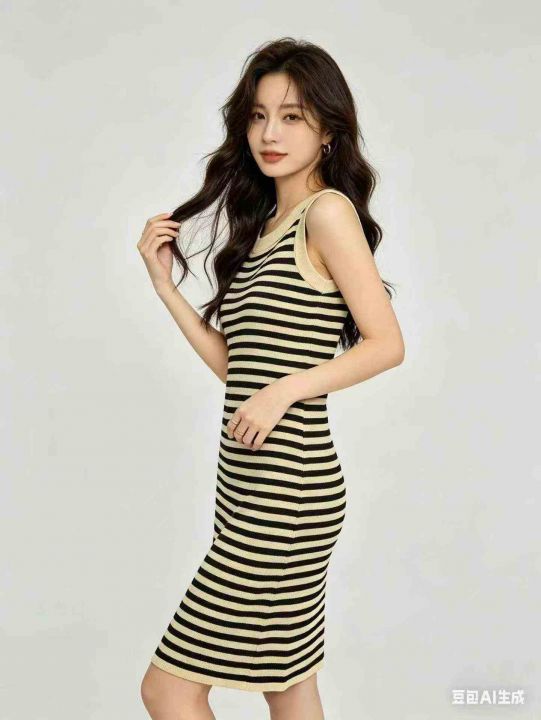 6.9元清条纹吊带背心针织连衣裙,面料柔软舒适弹力大...