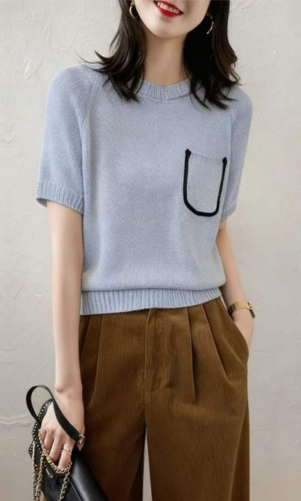 夏季新款韩系亚麻透气肌理薄款圆领口袋设计款冰丝针织T桖,独立包装均码面料柔软舒适有弹力,230件,全清5.9元超低价秒杀!分货加一!