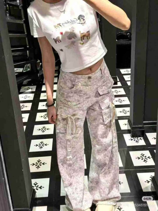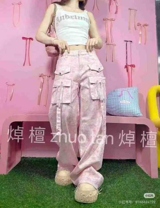 上新全清:25.8一件甜美辣妹炸街多口袋设计工装牛仔裤...