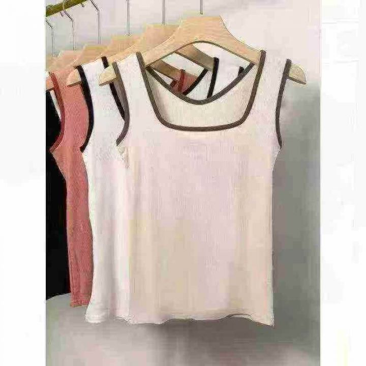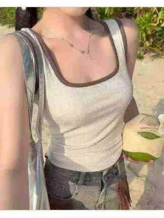 清3.8分货➕0.5新款方领撞色背心女内搭春夏新款宽肩带...
